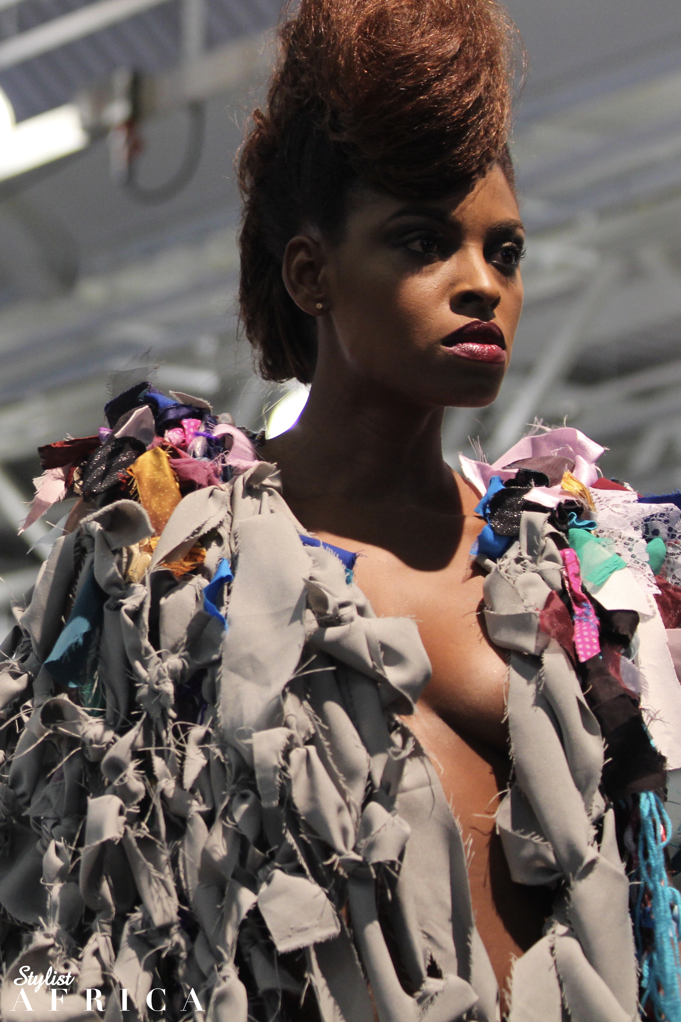 Designs from this design duo featured soft tailoring with greys and greens in contrast to vibrant coloured designs with elaborate tassel details and African prints.